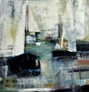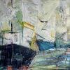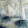 INLET WITH BOAT , 40X40CM, MIXED MEDIA ON CANVAS