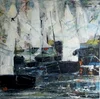 BLUEBOAT, 50X50CM, MIXED MEDIA ON CANVAS