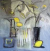 STILL LIFE WITH POTS, 80X80CM, ACRYLIC ON CANVAS